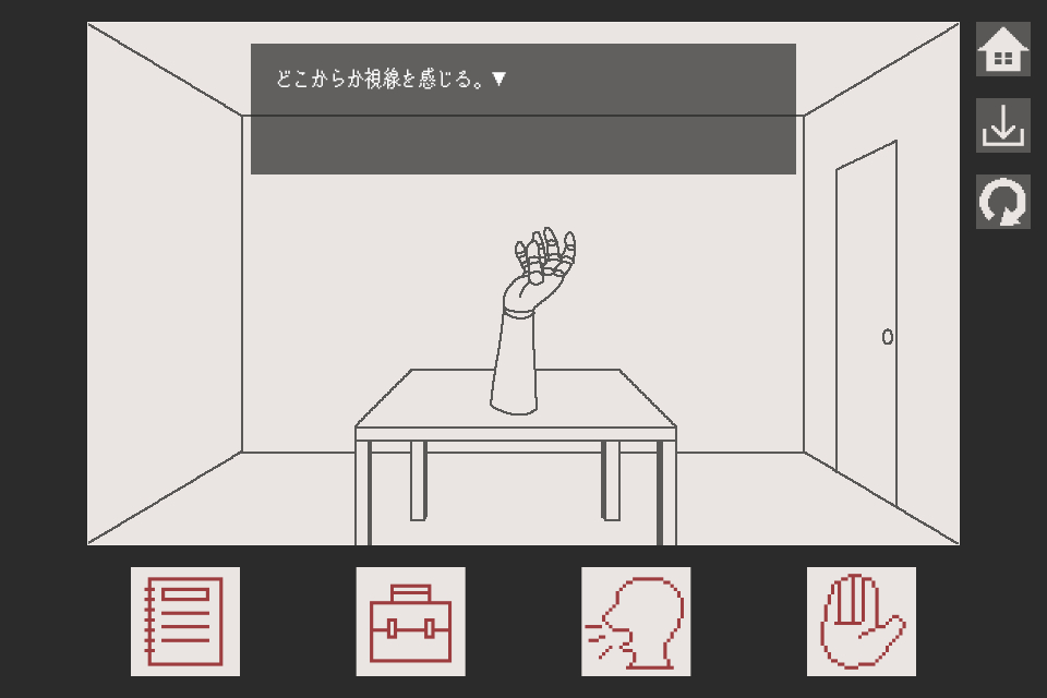 部屋の中にいる怪異を調査して、調査報告書を作成するだけのゲームです。
